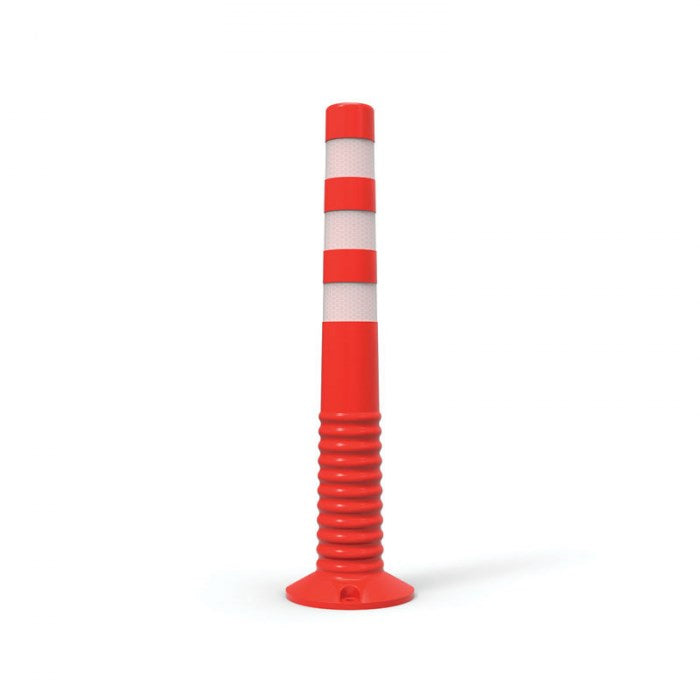 A highly visible flexible polyurethane bollard that is virtually indestructible. Bright orange finish with reflective bands for increased night visibility. Use for lane delineation or identifying hazards, particularly in tight driving situations such as car parks etc.