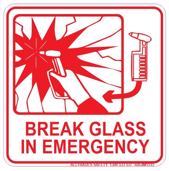 BREAK GLASS IN EMERGENCY SAFETY STICKER - 150 x 150MM