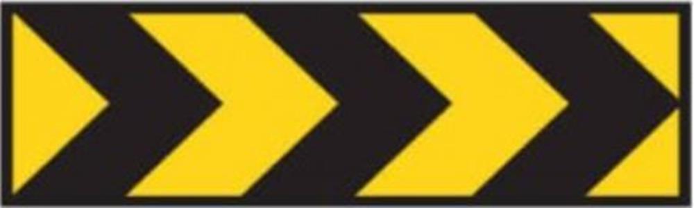 An easily recognisable right facing black chevron is most effective when used in a series, for example demarcating traffic flow around tight bends.