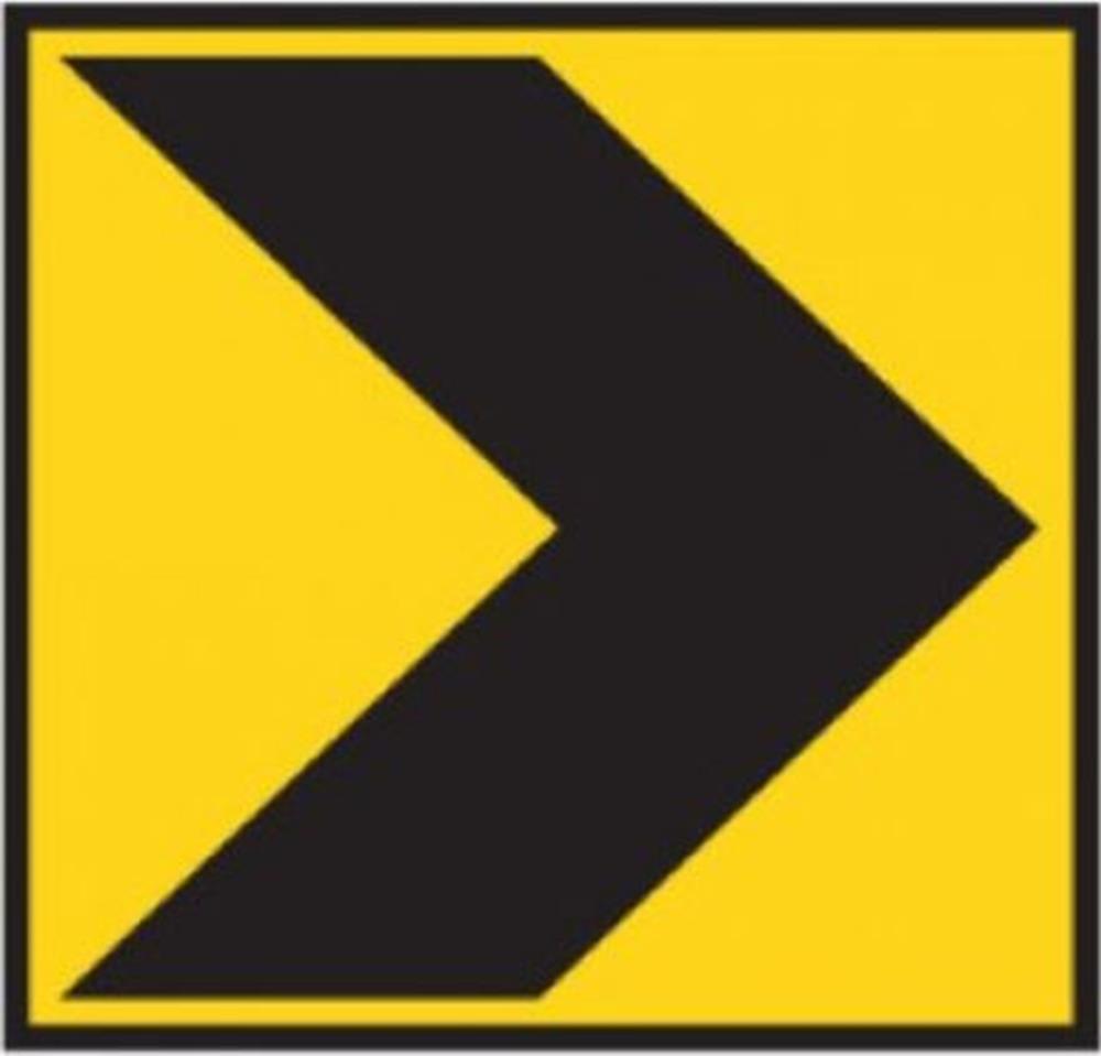 An easily recognisable right facing black chevron is most effective when used in a series, for example demarcating traffic flow around tight bends.