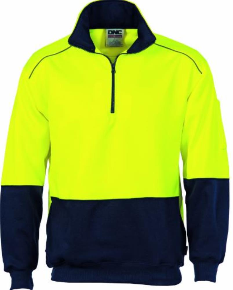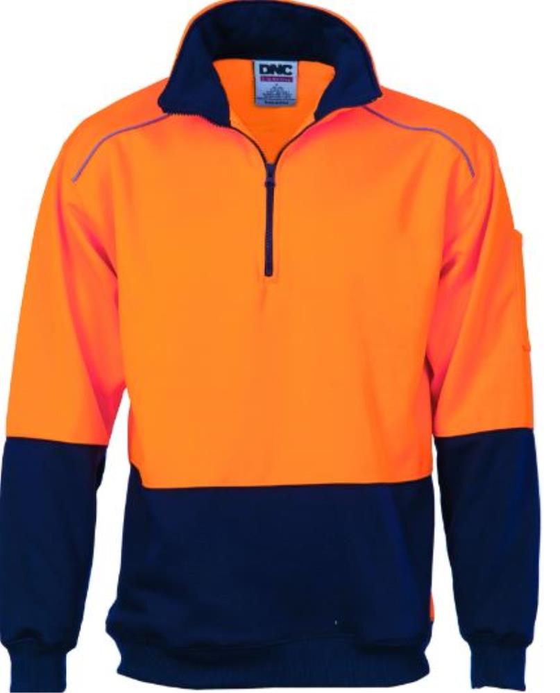 DNC 3928 HI VIS 1/2 ZIP REFLECTIVE PIPING SWEAT SHIRT