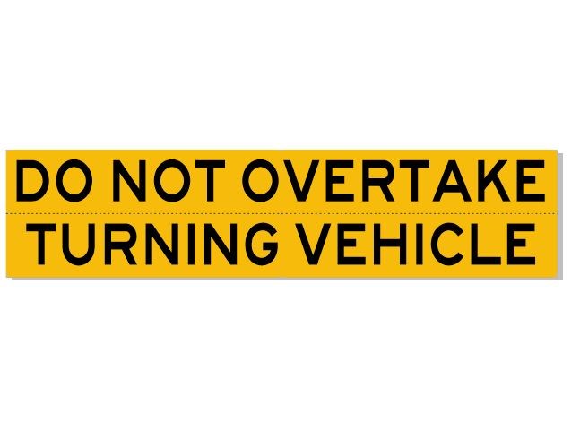 DO NOT OVERTAKE TURNING VEHICLE REAR MARKER PLATE-REFLECTIVE-SELF ADHESIVE