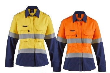 FLAMEBUSTER FSL016 ARCFLASH HRC2 LADIES HI VIS TWO TONE OPEN FRONT SHIRT WITH GUSSET SLEEVES AND FR REFLECTIVE TAPE