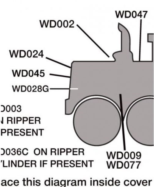 Safetysticker sheet for Motor Grader, contains 31 decals on sheet & application instructions all on one easy to apply sheet. These decals are additional to those supplied with the machine and include all the commonly recognised risks and hazards that are required to be labelled by local O H & S regulations. Crush zones, hot parts, pressurised system, pinch points warnings, rotating parts warnings, knock over & collision warnings, filler labels, cab warning stickers are all included. Everything you need to complete a risk assessment and have your machine meet the local OH & S standards