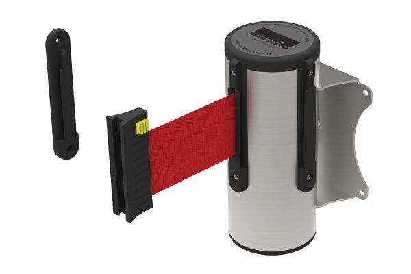 A 304 stainless steel body housing our 3 metre retractable belt cassette in a range of colours. Includes wall receiver bracket, self-locking belt clip and built-in brake feature.