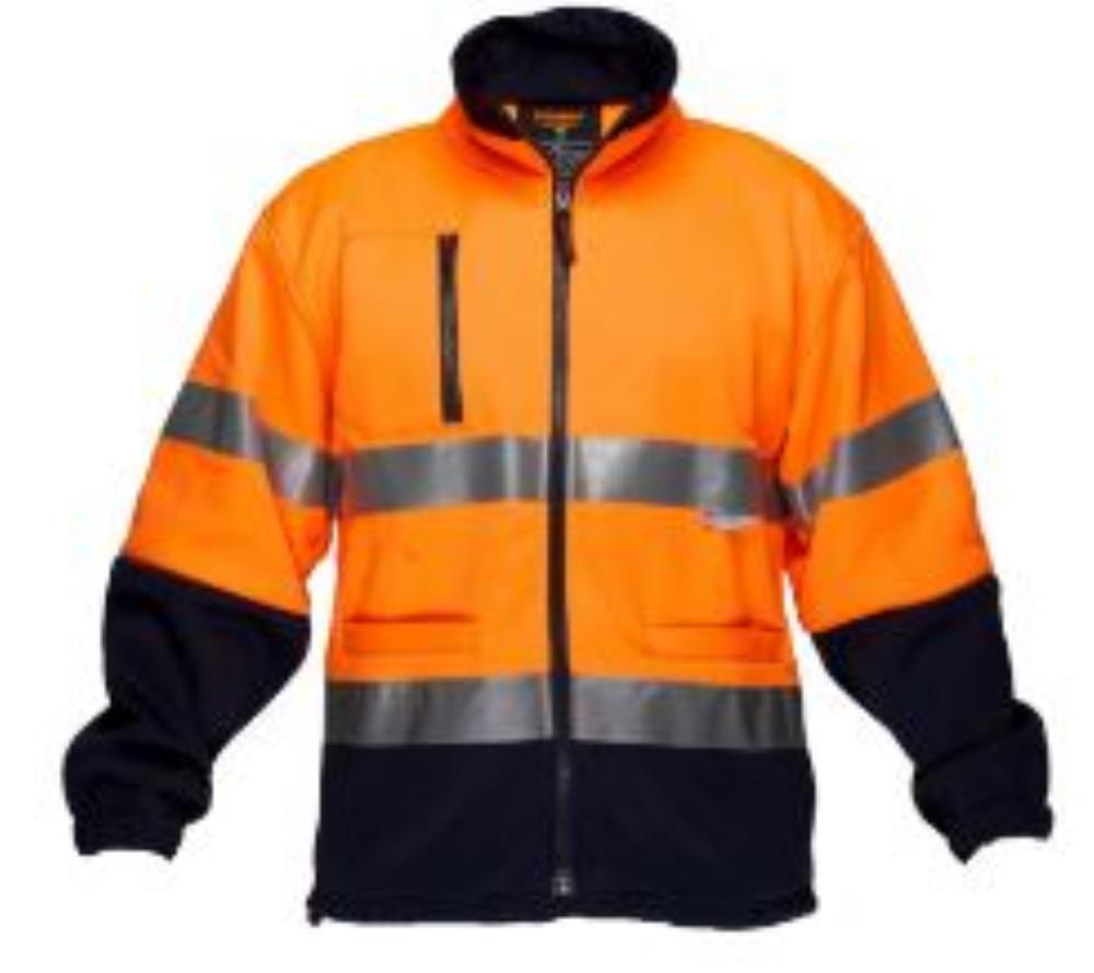 Double layer single brushed fleecy jumper with Water guard protector for a highly water resistant garment. Anti-Pill treatment with plastic zipper. Zippered right chest pocket and two open pockets at the waist. HiVisTex Reflective tape around body and around arm for day/night use. Can be zipped into all Shell jackets to make 3-in-1 jackets.