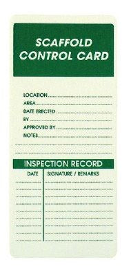 Safety control card for scaffolding, ensuring workers do not use scaffold without inspection record.