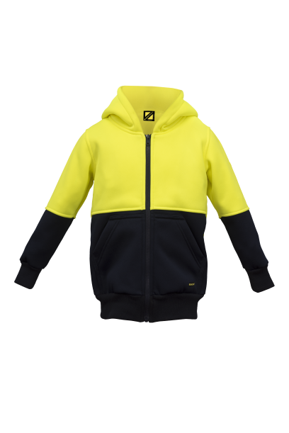 WORKCRAFT WK8009 KIDS HI VIS POLY/COTTON FLEECY ZIP FRONT HOODIE